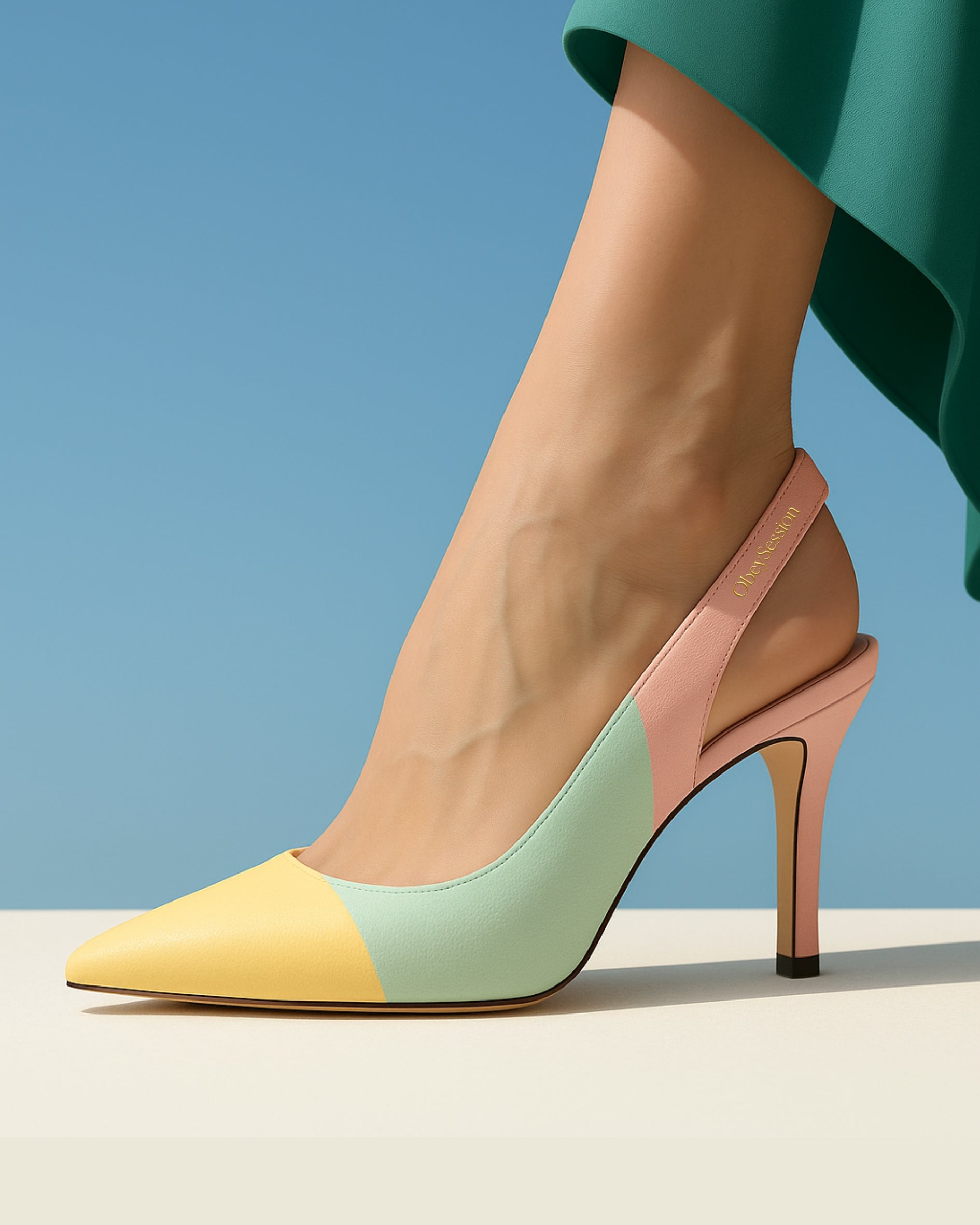 Azure Bloom 105 is a quiet storm of color — soft yet bold, calm yet sculpted. Sky blue, mint, and pale blush merge in a pointed slingback stiletto that echoes coastal air and still water. A walking palette of serenity and clarity.