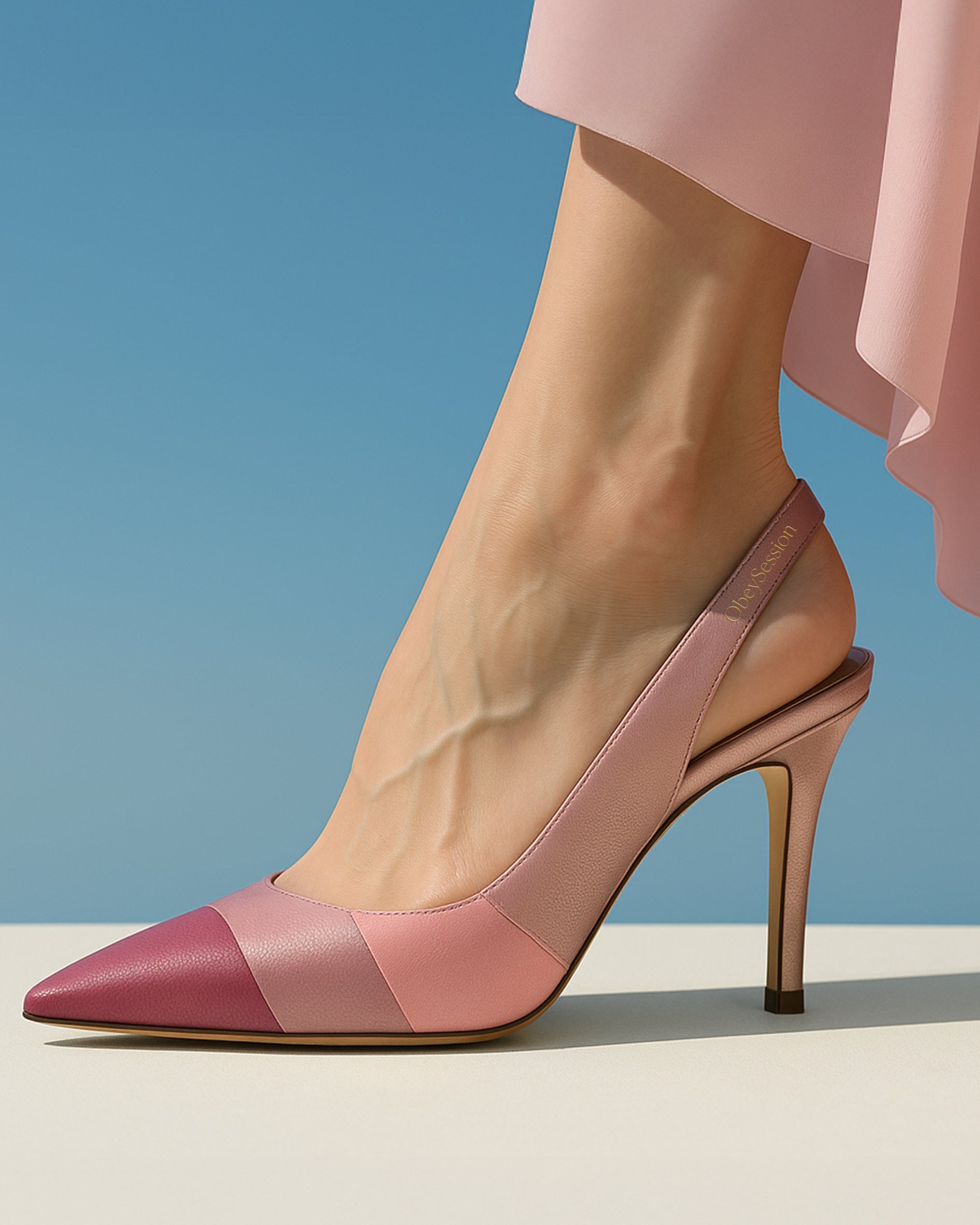 Rosada Dusk 100 is twilight, captured in motion. Warm blush, soft petal, and rose-toned layers come together in a gradient that glows like the last light of day. A pointed toe, sculpted curve, and 100mm heel create a balance of delicacy and dominance.